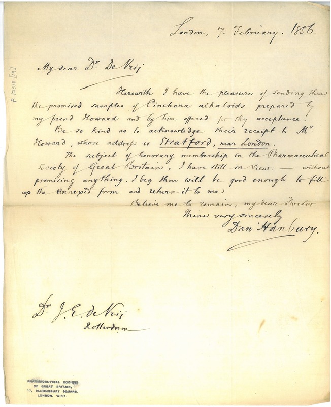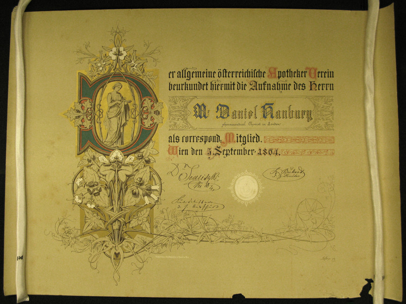 In the literature, there are various accounts of how he came to know Friedrich Flückiger, the book’s co-author. One is that Daniel’s articles on liquid storax, written for the Pharmaceutical Journal, led to Flückiger making contact; another that it was actually Daniel who reached out to Flückiger after reading one of his books on pharmacognosy. However, in his ‘obituary notice of Daniel Hanbury’ (translated into English) Flückiger states that Daniel’s ‘views on frankincense’ led to their acquaintanceship.