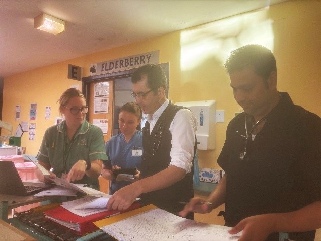 Above: Sarah, Pharmacist, joins the Frailty Consultant led MDT