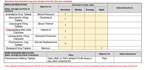 We are also exploring how Medicines Reminder Charts can help patients remain independent with their medicines. A template integrated into community pharmacy dispensing systems would make this easier to use in practice.