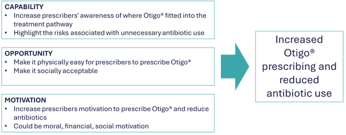 Updates to the NICE 91 Guidance on Antimicrobial Treatment of Acute Otitis Media in March 2022 included a non-antibiotic treatment option - Otigo® ear drops. This gave Rachel an opportunity to target a subset of the patient population and ensure appropriate use of antibiotics. This route also supported prescribers as it offered parents a treatment option for their child without resorting to antibiotics, ensuring parental satisfaction.