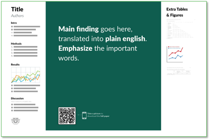 - Detailed information should still be present, but not the core of the poster.