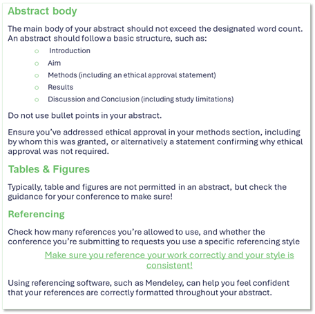 Although a great opportunity to share their research, many early-career pharmacists struggle to develop conference abstracts and posters. Ms Ross ran through some common pitfalls which are commonly seen in RPS Conference submissions, to help attendees understand what to look out for when submitting their abstracts and developing their posters:
